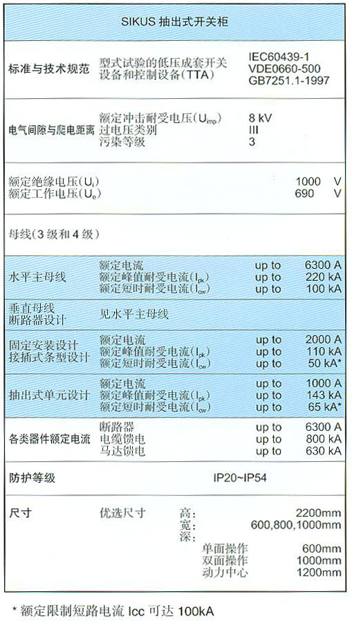 进线电流至6300A,抽屉单元额定电流最大1000A,适用于各种功率等级,从动力中心(6300A)通过主配电设备和分配电设备至马达控制中心。防护等级:IP20-IP54.