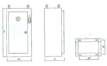 注:外形尺寸也可按用户要求加工。A型配电箱外形尺寸根据用户方案确定。C型配电箱外形尽寸最小宽度为600mm,高度为700mm,深度为275mm。